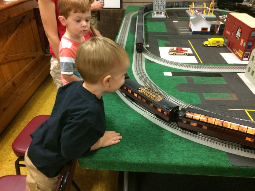 We spent most of the time at one end of the room where there were huge dioramas/train tables setup. Quincy spent easily an hour going back and forth between them watching the trains go in and out of tunnels and around the track.