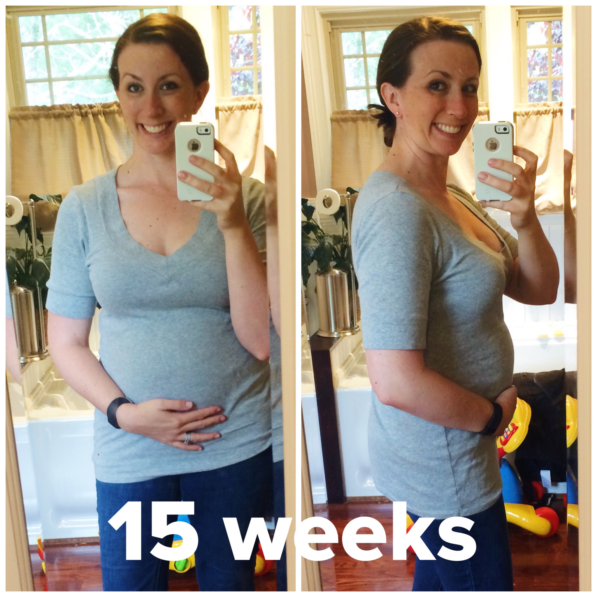 Another interesting factoid about this pregnancy is that I weigh exactly the same at 15 weeks this time as I did with pregnancy #1 and #2, BUT I started off 10 pounds heavier than I did with #1 and #2. So far I've lost weight but my body has ended up in the same place - our bodies are so amazing, ladies!