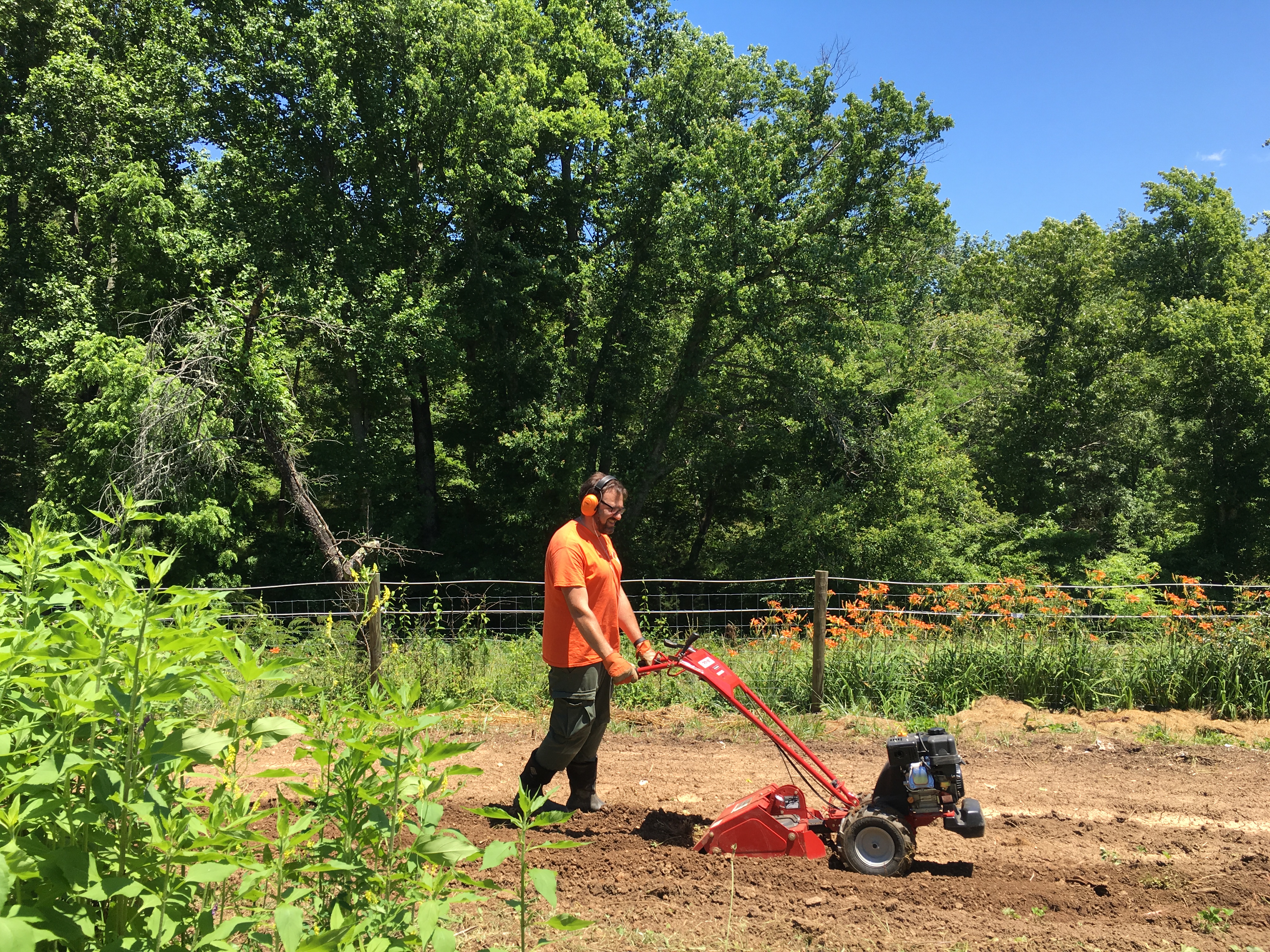 A very happy John tilling the 40% of our garden we had yet to plant due to the need to till!